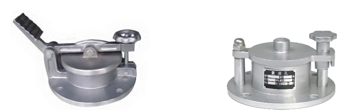 量油孔分為旋轉式和腳踏式兩種,裝于油罐頂部,用于測量罐內油品的高度、溫度及取樣等,其規格為DN100與DN150兩種。
