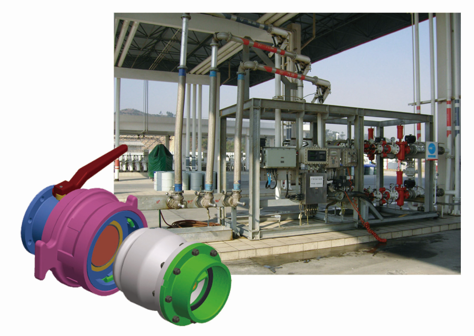 干式閥底部裝卸臂采用進(jìn)口干斷接頭,符合美國石油學(xué)會(huì)API